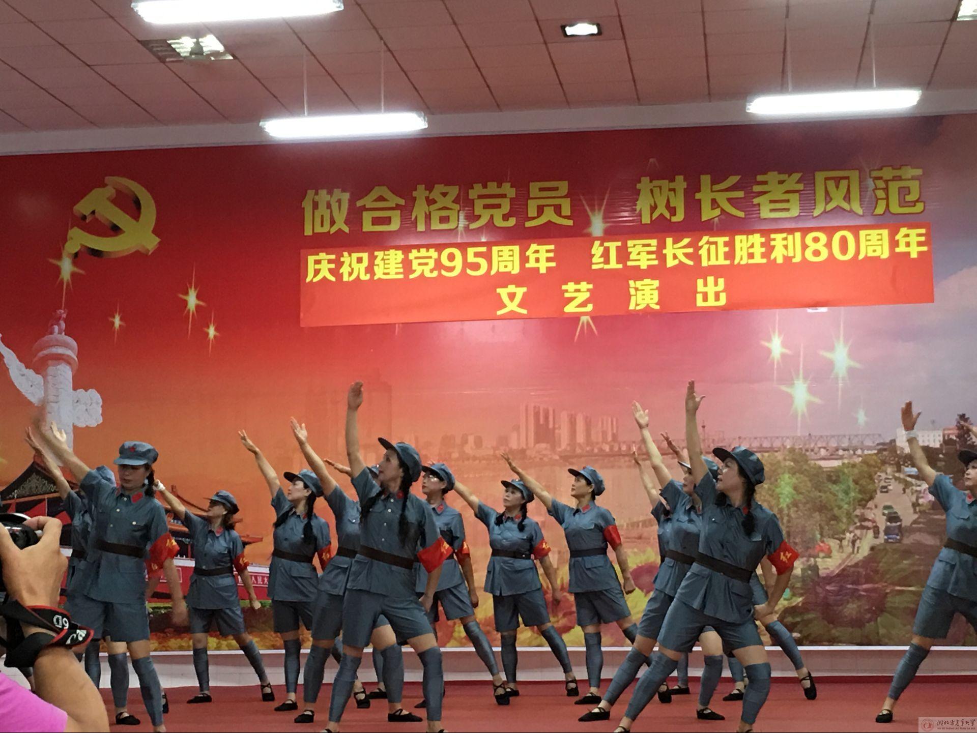 (郑婷婷 李妍珉)6月29日和30日,襄阳市老年大学组织艺术团团员们举办了两场 “做合格党员,树长者风范”庆祝建党95周年,红军长征胜利80周年文艺演出。在老年大学艺术团中,有很多是入党多年的老党员,他们都拿出了本团最拿手的节目,用自己的方式为建党95周年及红军长征胜利80周年献上了一份祝福。