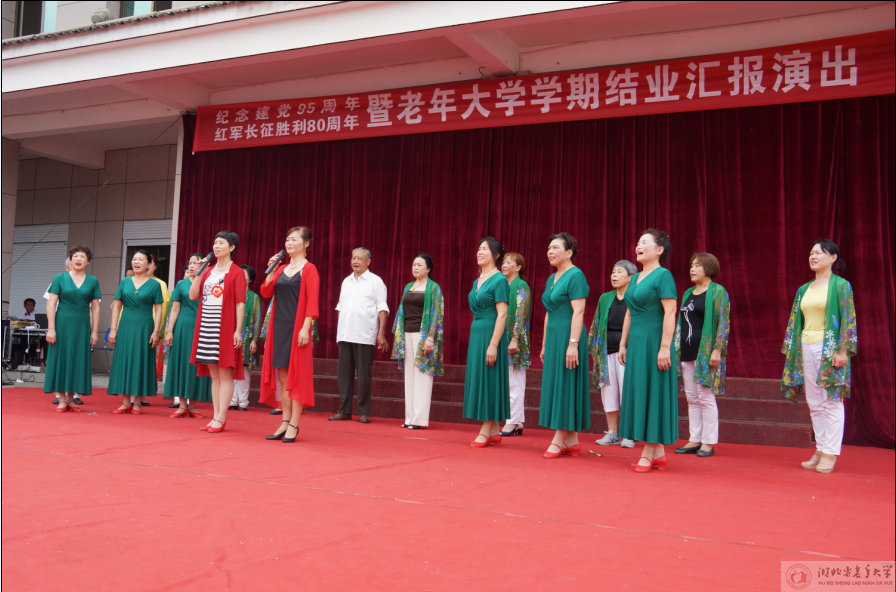 (通讯员:韩建华 易双红/ 摄影 :望作信)7月4日上午9时,夷陵区老年大学纪念建党95周年红军长征胜利80周年暨学期结业汇报演出在河心公园举行。夷陵区老年大学校长朱吉荣、区委老干部局局长李正源等现场观看演出。