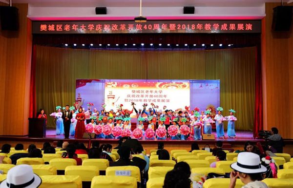 2018年12月18日上午,樊城区老年大学成功举办了庆祝改革开放40周年暨2018年教学成果展演活动。500多名师生参与了演出,用广大老年朋友喜闻乐见的形式、创新的载体,接地气的艺术语言,传播“颂党恩、跟党走”,积极“传播正能量”,让“四个自信”更加深植老干部和老年学员心田。